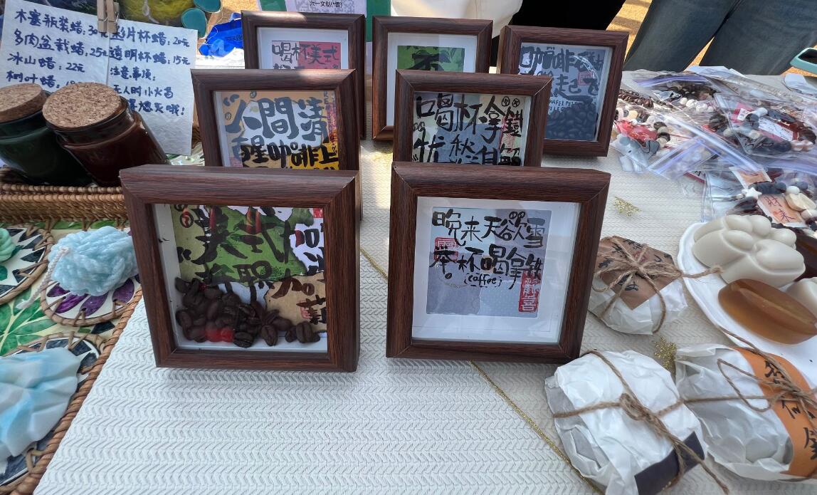 活动当天,“六一文创”及旗下品牌“四喜丸制”摊位前人气满满,成为市集上一道亮眼的青春风景。团队精心布置展位,将数字创意与传统手作相结合,展出了咖啡文创、手工香薰、羊毛毡艺术等一系列原创作品,设计新颖、风格清新,不少市民和游客被精致的文创作品吸引,纷纷上前咨询了解、拍照打卡、扫码选购,现场氛围热烈而温馨。
