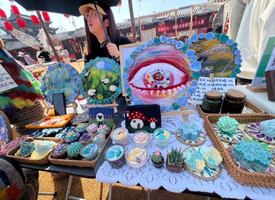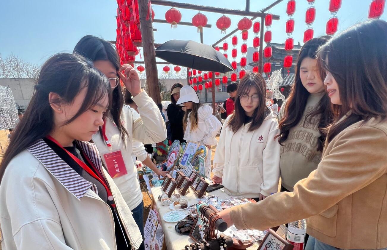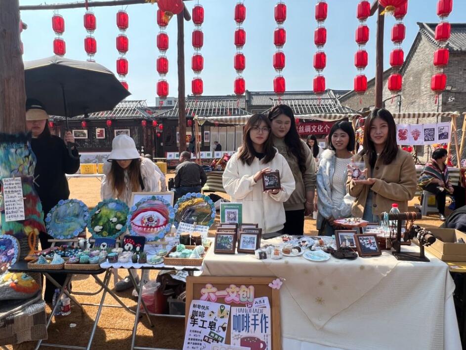 春日周村,古街焕新。4月2日,周村古商城“金周村・银子市”大学生轻创非遗市集火热开市。山东轻工职业学院数字创意系“轻锋社”团队组建的“六一文创”精彩亮相,在古色古香的市集现场,用青春创意为传统文化注入新活力。